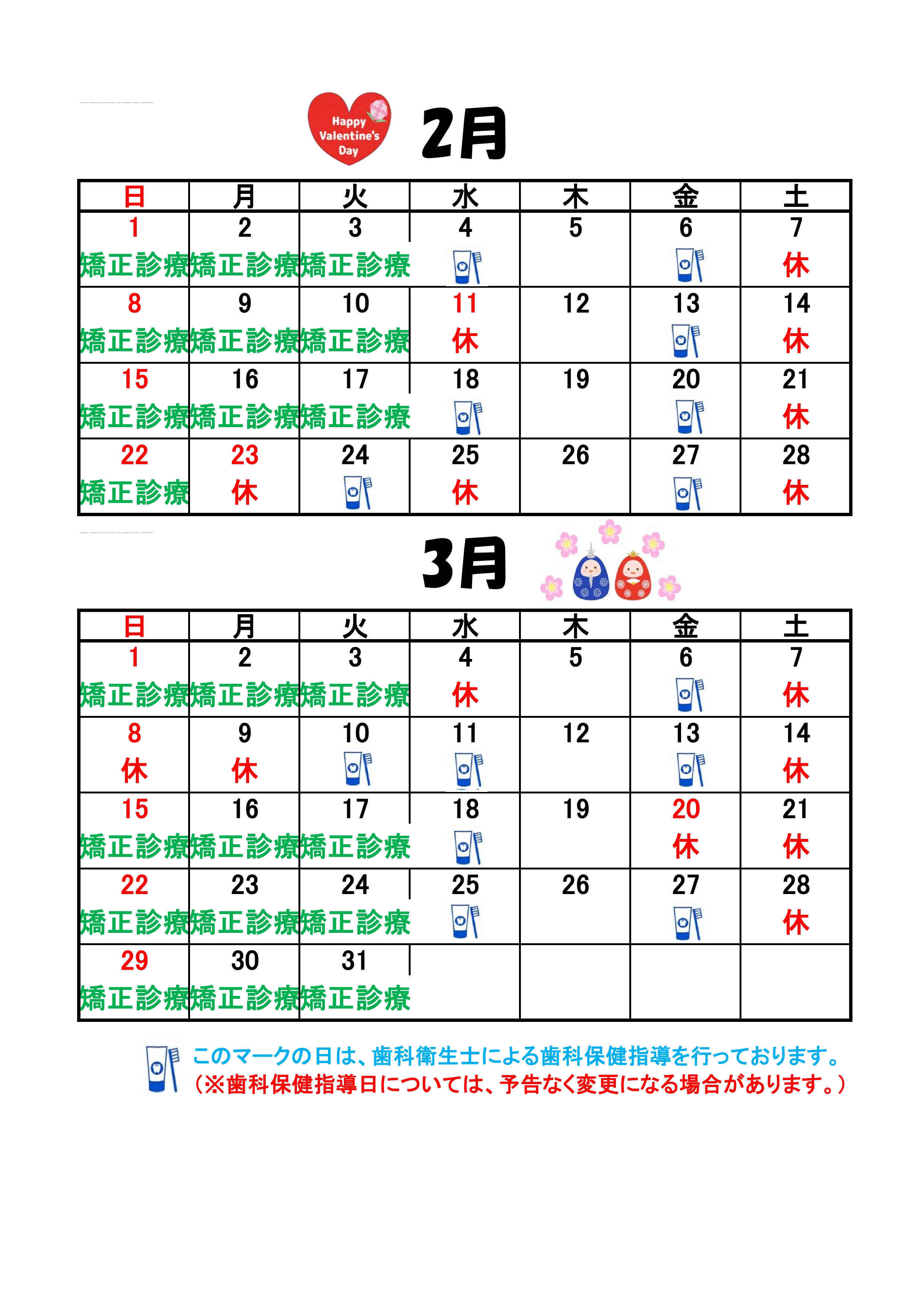 (火曜日(隔週) 水曜日 金曜日は、歯科衛生士による歯科保健指導を行っております。)