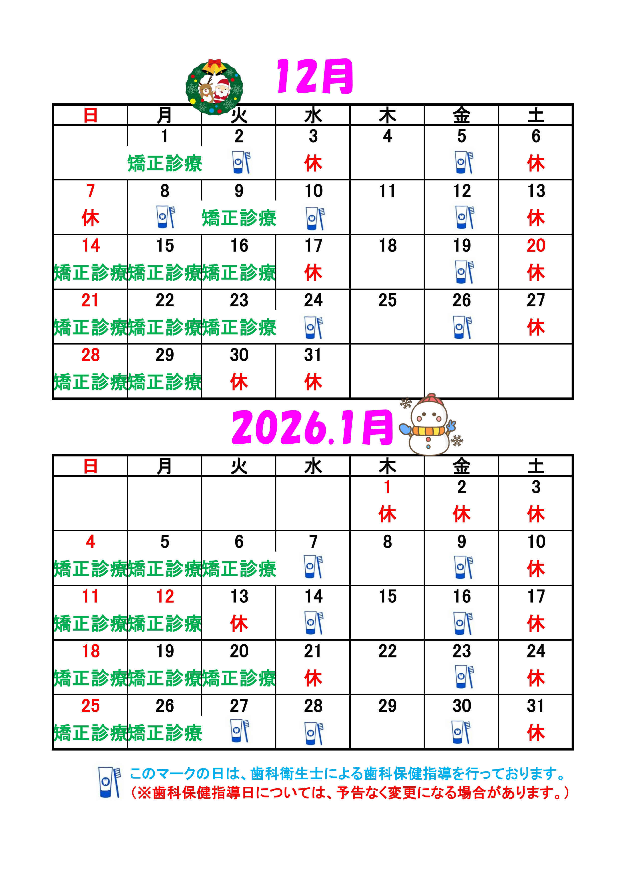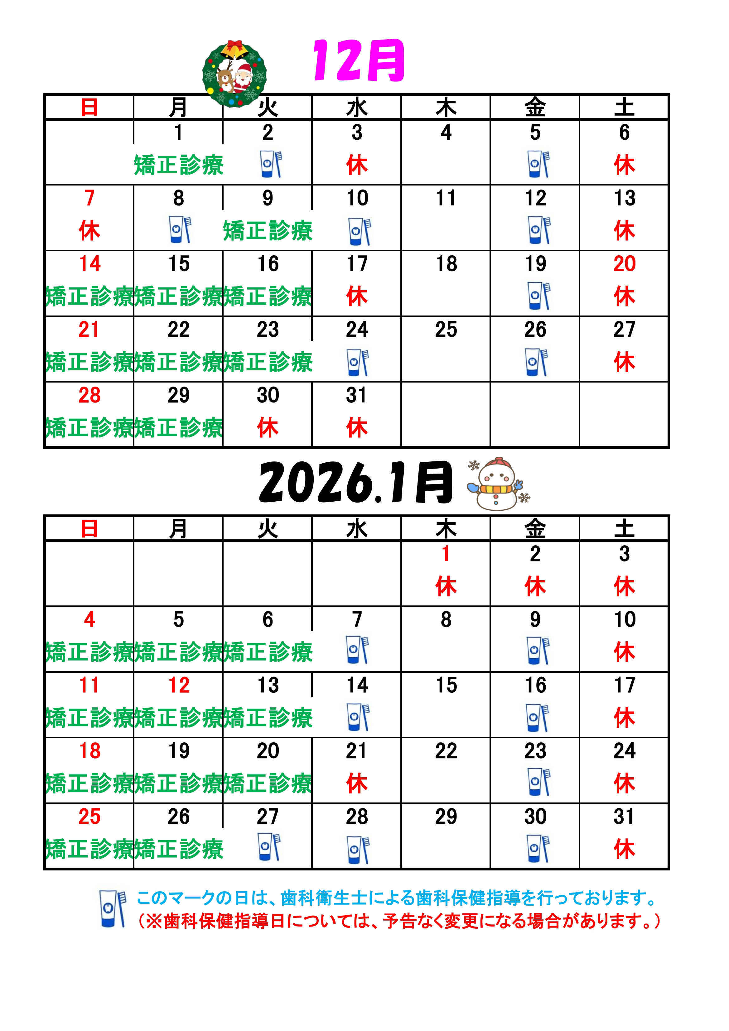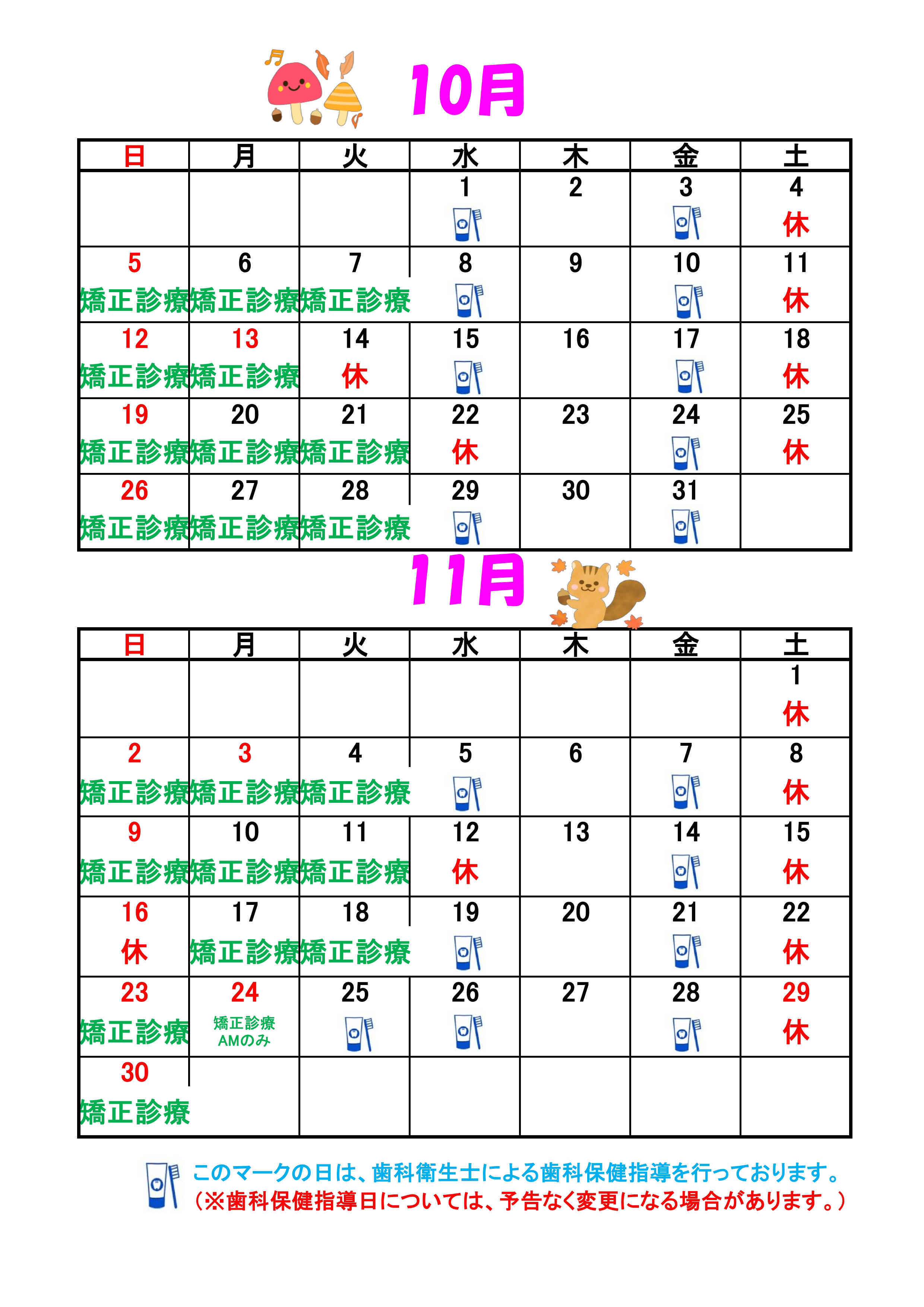 (火曜日(隔週) 水曜日 金曜日は、歯科衛生士による歯科保健指導を行っております。)