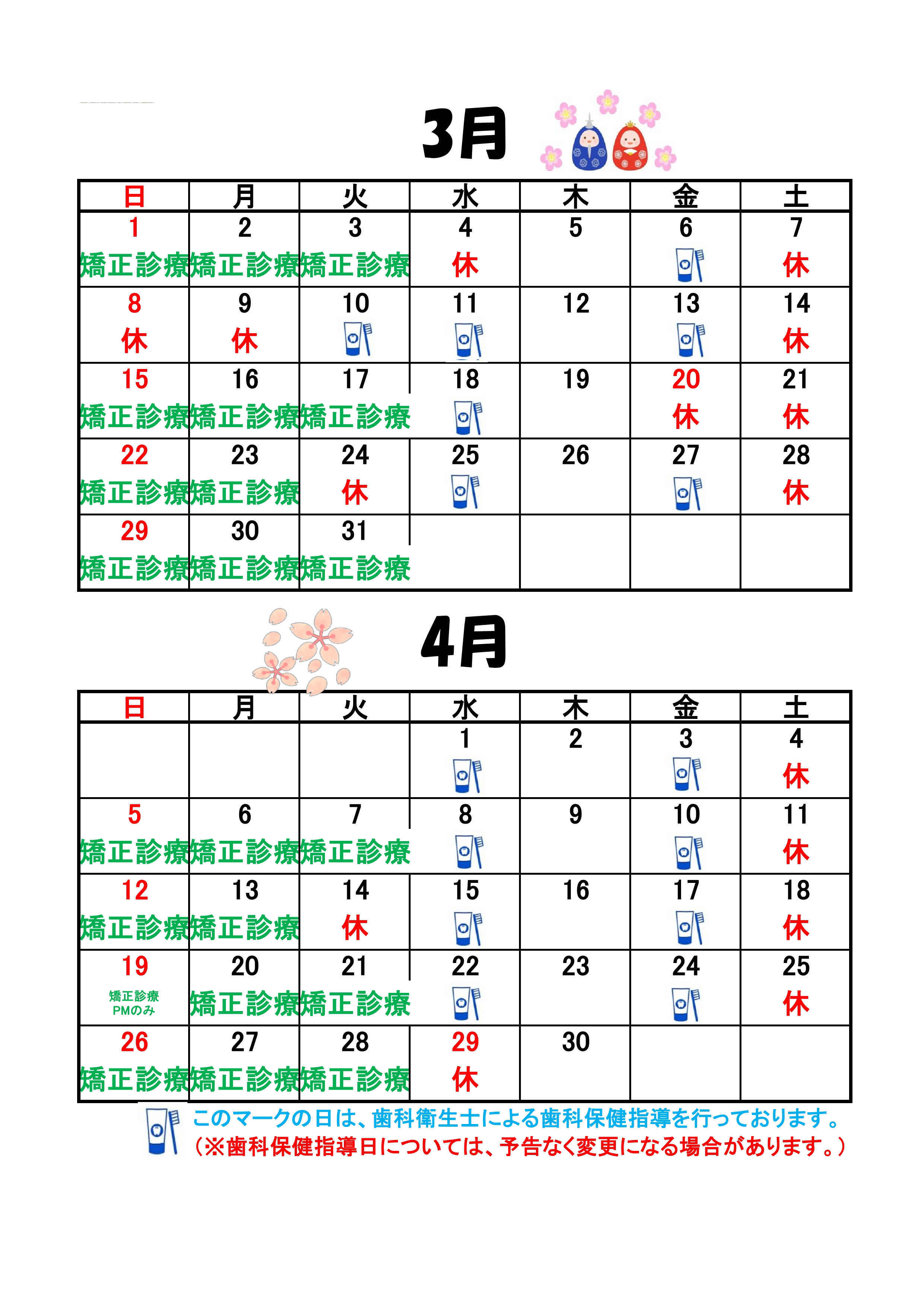 ☆初診相談をご希望の方は、矯正診療日でご検討をお願い致します。